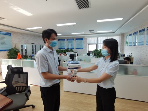 一、開展防疫物資儲備及發放工作。8月5日,在公司領導的關懷下,根據員工數量和客戶流量,集中儲備了一批包含醫用口罩、免洗手液、酒精消毒液等在內的防疫物資,同時按部門分批次進行發放,確保人手一份、隨時可用、隨手可取,堅決夯實打贏這場疫情防控戰的物資基礎。