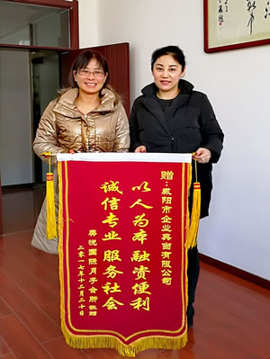 2017年12月20日下午,天氣晴朗,陽光明媚,咸陽美悅國際月子會所負責人來到咸陽市企業典當有限公司,贈送印有“以人為本、融資便利、誠信專業、服務社會”的錦旗,以此感謝企業典當公司給予的大力支持和幫助。 咸陽美悅國際月子會所是咸陽較知名的企業,因今年要開三家分店,裝修資金緊張。11月23日,會所負責人來到咸陽市企業典當有限公司進行貸款,公司了解情況后積極配合客戶辦理手續,兩天內就讓客戶拿到了貸款。解決了客戶的燃眉之急!耙匀藶楸、融資便利、誠信專業、服務社會”充分體現了客戶對企業典當團隊的肯定,正是團隊用認真負責的態度和熱情周到的服務,贏得了客戶的滿意。 作為國有性質的咸陽市企業典當有限公司自成立以來,秉承“誠信、專業、高效、創新”的經營理念,以"以人為本、嚴謹規范、互惠共贏、服務社會"為宗旨,依靠國有典當企業的資本優勢,以優秀的管理團隊和高效的優質服務,發揮典當行業快捷便利、融資及時的特點,為中小企業搭建一條便捷的融資通道。為我市的經濟發展貢獻力量。