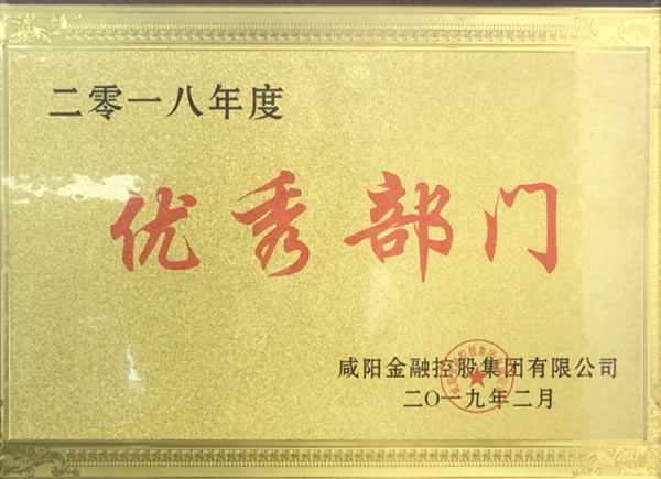 咸陽市企業典當有限公司榮獲咸陽金融控股集團有限公司年度“優秀部門單位”稱號