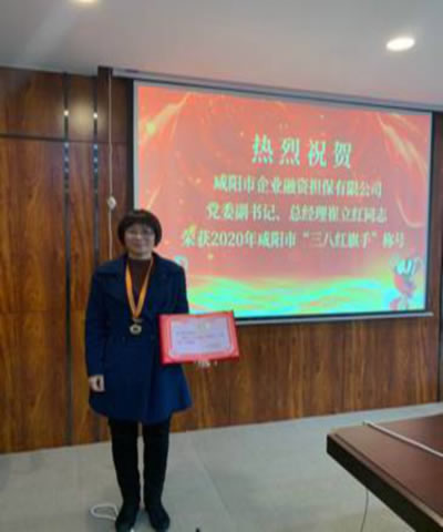 咸陽市企業典當有限公司始終堅持以習近平新時代中國特色社會主義思想為指導,增強“四個意識”、堅定“四個自信”、做到“兩個維護”,認真貫徹落實市國資委、市金控集團公司決策部署,形成了以公司董事長崔立紅同志為核心的專業團隊,積極做好先進崗位引領、樹立團隊模范。近年來,崔立紅同志先后多次被授予“陜西省優秀青年崗位能手”稱號、“優秀黨務工作者”、支持咸陽市中小企業發展“先進個人”等榮譽稱號,2020年3月被咸陽市婦女聯合會評選為“三八紅旗手”。充分展現了新時代女性的職業風采和國有企業管理者的模范帶頭作用。